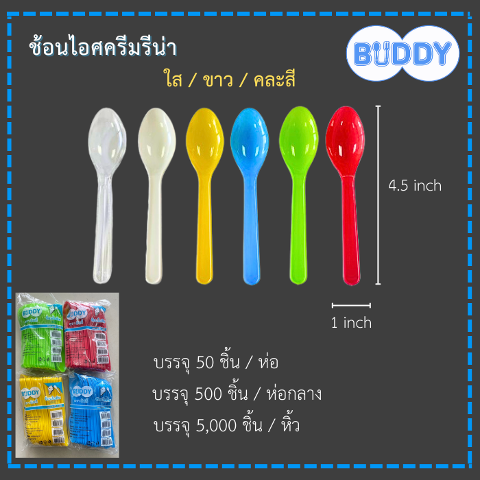 ช้อนไอติมรีน่า คละสี ช้อนไอศกรีม ช้อนบิงซู ช้อนตักขนม ช้อนพลาสติก สีแดง ฟ้า เขียว เหลือง พลาสติกรีไซเคิลได้ หลากหลายสี